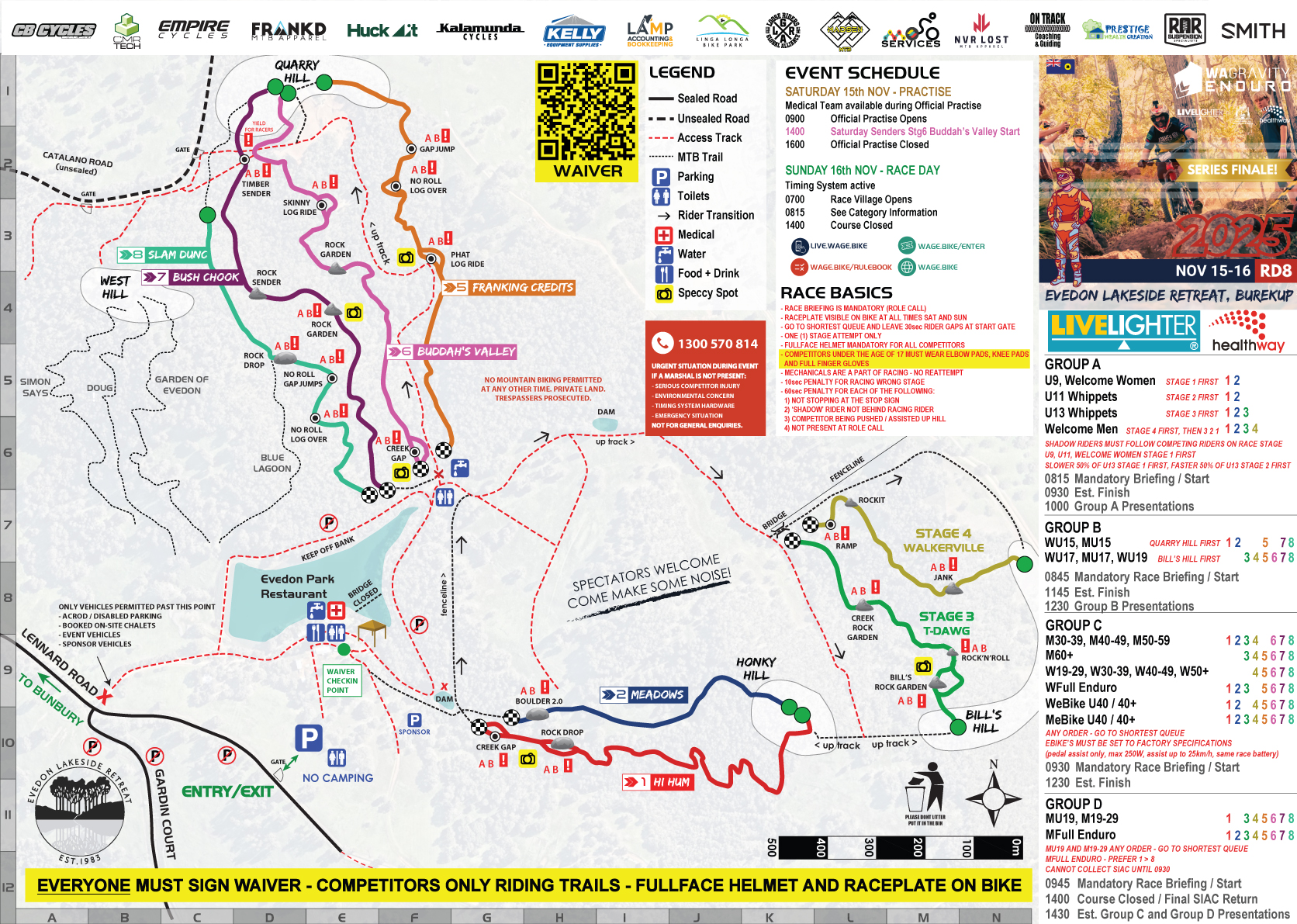 - There is a mandatory waiver FOR ALL attendees (spectators, crew, guests, riders – everyone)